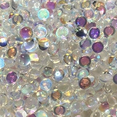 Aurora Borealis (AB) rhinestones feature a specialty coating applied to the surface of the crystal. This coating creates a shimmering rainbow effect, reflecting warm golds, soft pinks, and vibrant blues depending on the lighting and angle. AB stones are ideal for adding dimension and light play to any design, but they are different from clear or solid-colored crystals; they are treated to sparkle in multiple tones, not one static hue.